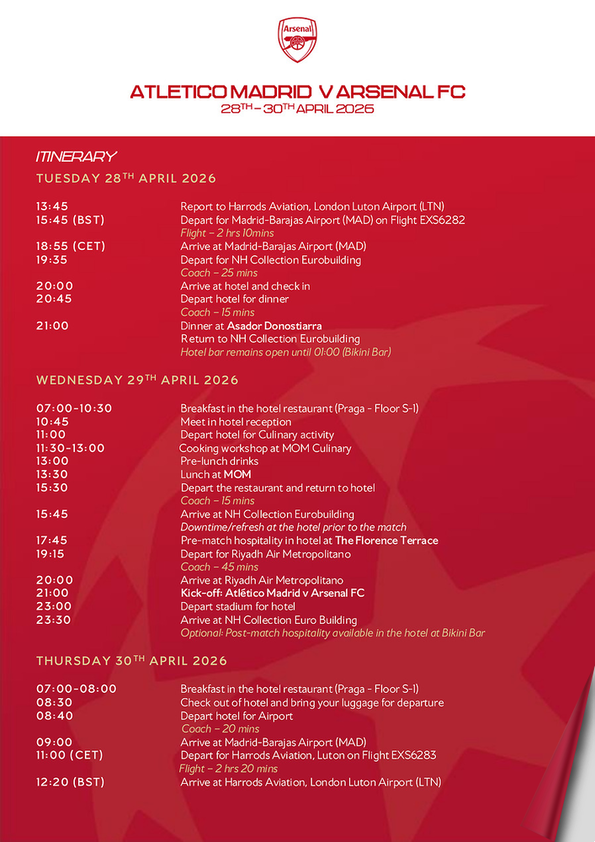 Atletico Madrid v Arsenal F.C. - Partner Itinerary - Flipbook - Page 1
